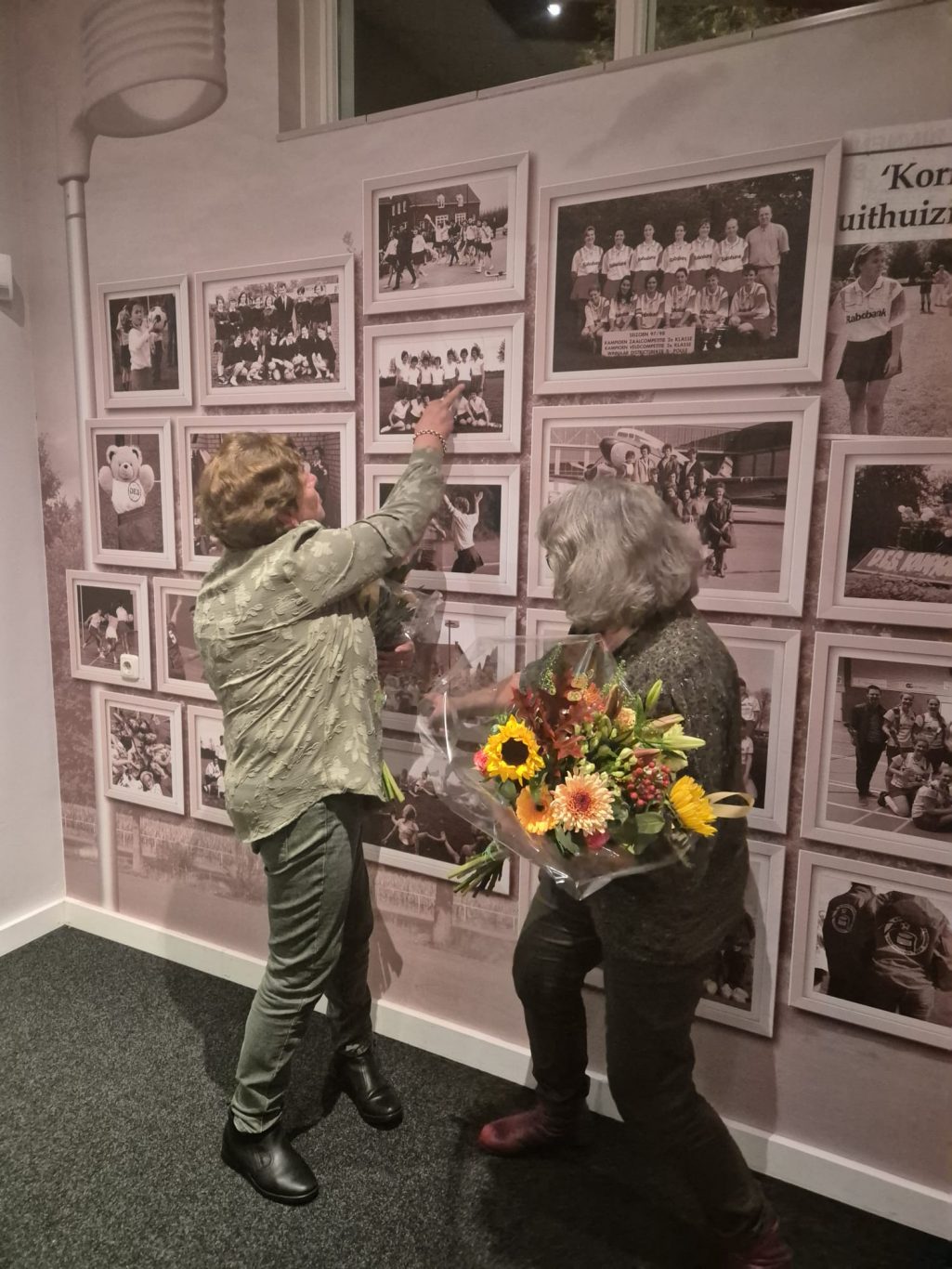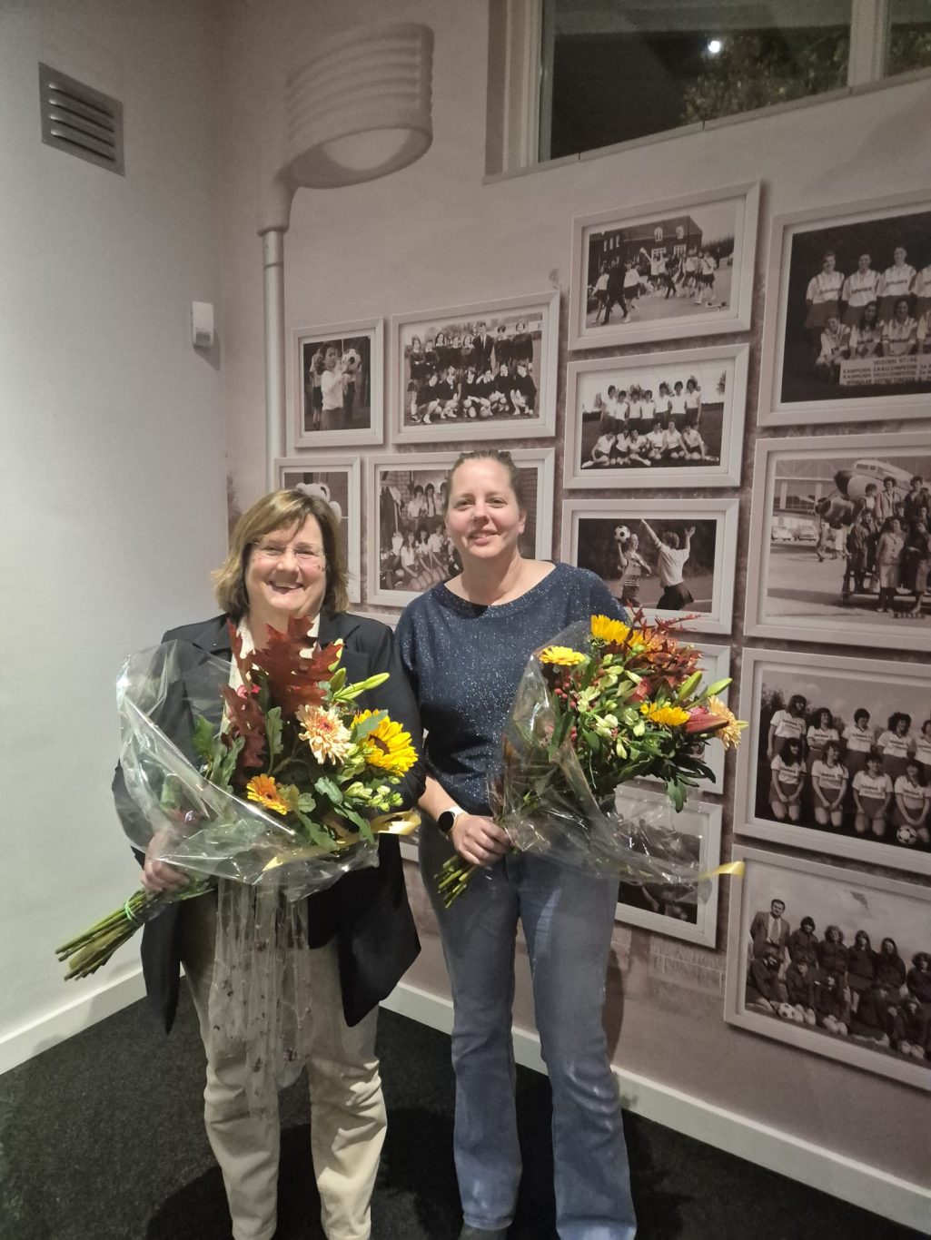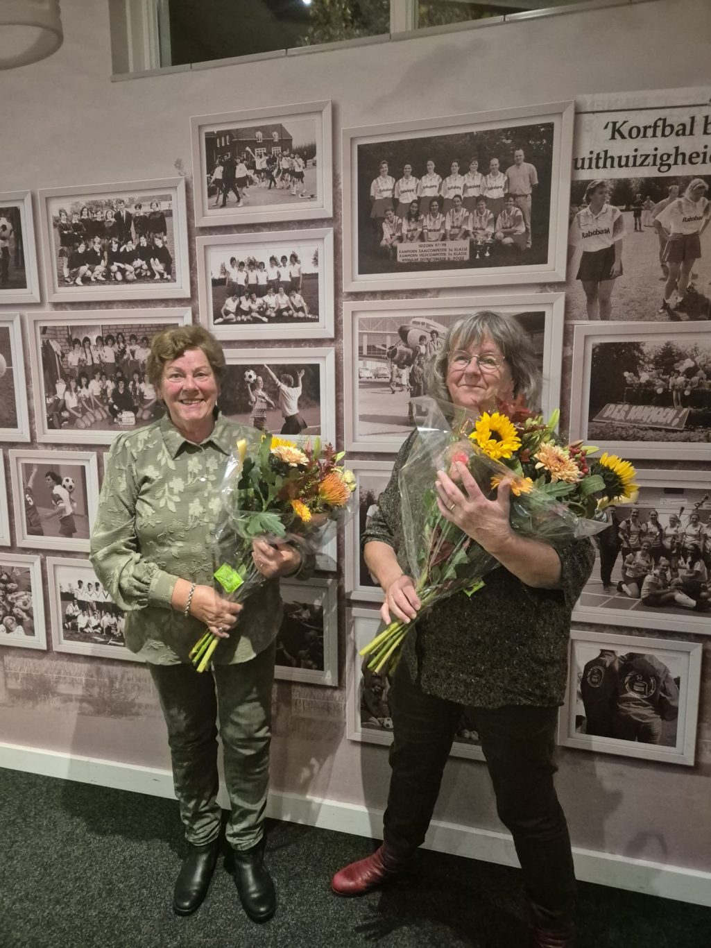 Bloemen werden aangeboden aan Harriët Verstappen en Marja van Treek die aangegeven hebben te stoppen met hun taak als wedstrijdsecretariaat respectievelijk penningmeester.
