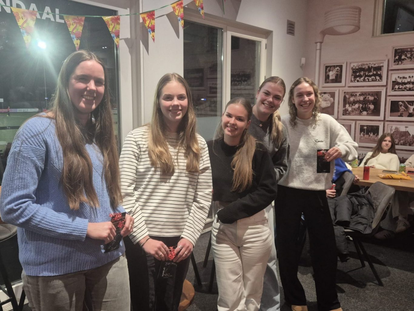 5 dames behaalden het afgelopen jaar het spelregelbewijs, als voorbereiding op het fluiten van jeugdwedstrijden. Loes van Son, Lieke Ermers, Meike Ebben, Isa Gerrits en Jenna Smolders kregen als kleine attentie een fluitje overhandigd.